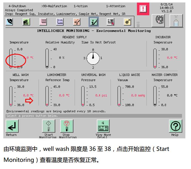 洗液加入反应杯之前需要加热至37度,报警原因可能为:室内温度过高或者洗液加热组件损坏。