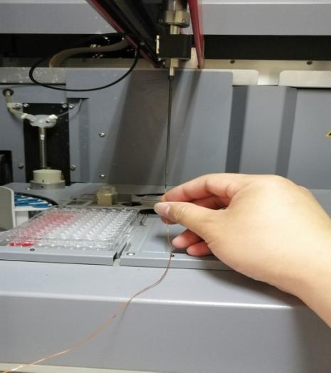 3.将导管放入相应的试剂桶内,并等候仪器自动感应液面后再继续实验。