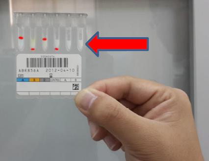 5.用镊子或其他长柄硬物夹取出试剂卡;