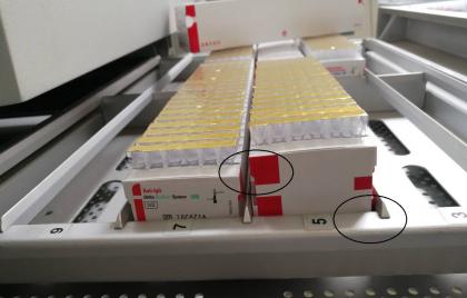 多数情况为试剂卡纸盒放置不正确或者个别试剂卡在纸盒内放置不正确。