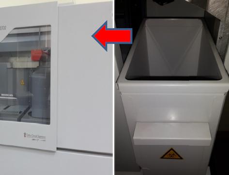 可能原因为未及时清理垃圾桶中试剂卡及传感器,或开关废弃物舱门后未清理废卡却清零计数导致仪器计数错误出现废卡丢弃过程中卡死。
