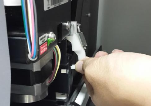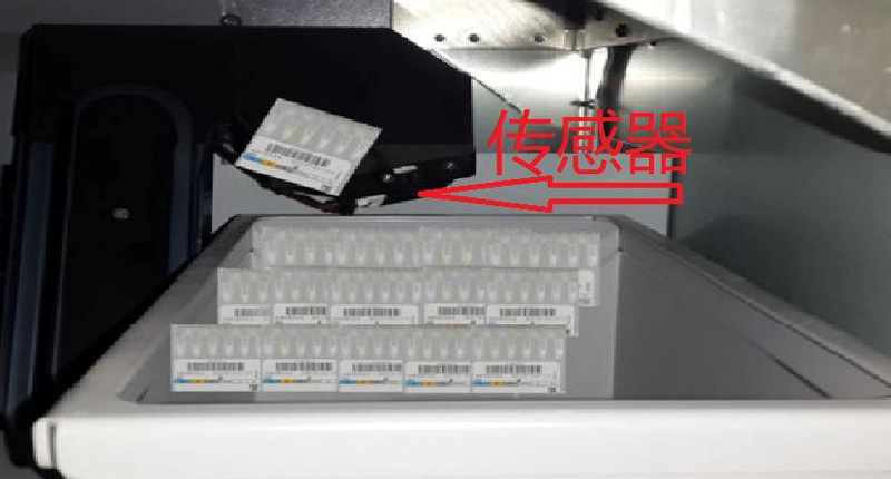 3.取出卡于滑轨的试剂卡,清洁传感器,并将垃圾桶中全部废卡清空;