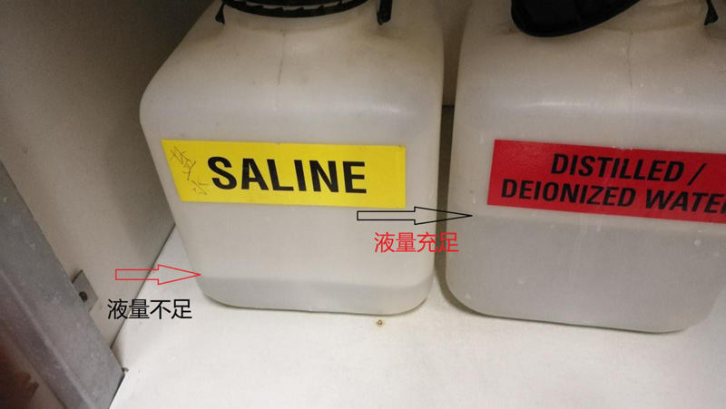 故障一 蒸馏水/盐水桶内有液体但报警无液体并停机