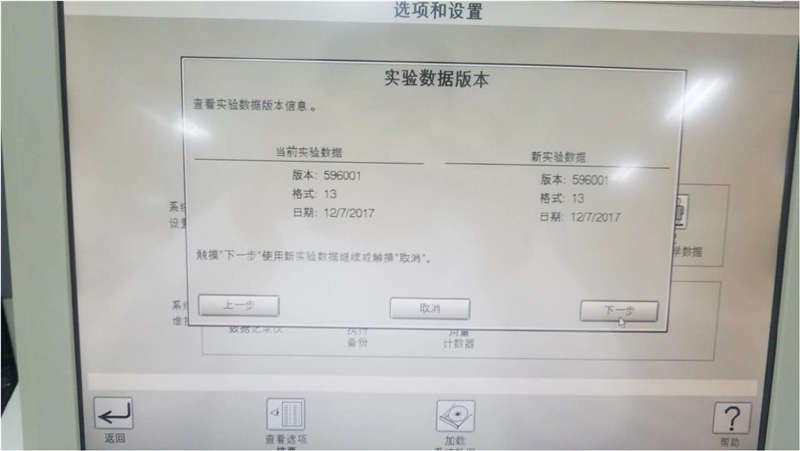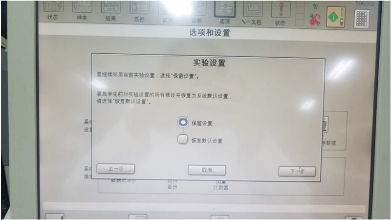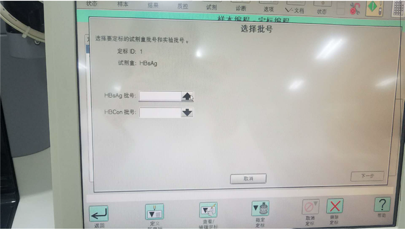 使用正常更新定标盘的方法并没有解决问题,最后分析发现:由于乙肝表面抗原项目特殊,是增强版,本台机器从未用过这个项目,在更新定标盘的操作有差异,步骤3图中由“使用当前”更改为“选择替代实验”,具体操作如下:所有实验数据-----保留设置-----选择替代实验------HBsAgES Conf---- -完成