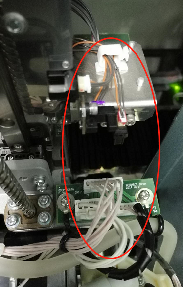 2. 检查试纸条抓取组件,发现电路板附近的线缆存在折痕;