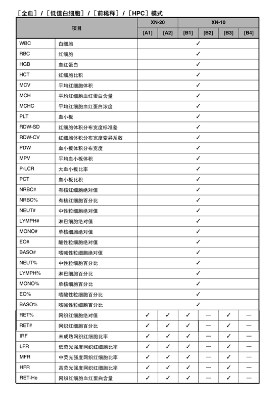 XN-10:XN-10[B1]、XN-10[B2]、XN-10[B3]和 XN-10[B4]XN-20:XN-20[A1]和XN-20[A2]