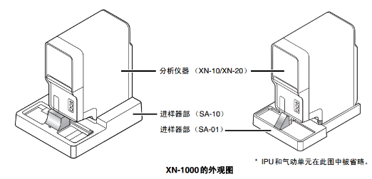 包含1台分析仪 (XN-10/XN-20)和1台进样器 (SA-10/SA-01)的系统,取决于所选择的采样器类型,将为以下配置之一。