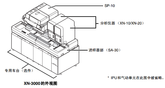 系统包含2台测定部 (XN-10/XN-20)、一台SP-10自动涂片制备仪和一台进样器(SA-30)。有两种模式可用:在 “Standalone mode”中,IPU管理SP-10指示;在 “Host mode”中, SP-10直接连接主机。
