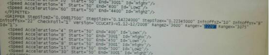 抓取臂移动中检测到目的坐标超出机械移动范围,为防止发生意外终止移动,产生报警。这个现象比较典型,可以查看后台数据加以验证。目录C:OCDAV2G文件夹中的config.xml中指明抓取臂Y方向移动极限值为2220,而当前调整值中1、2号卡槽对应的值为2225和2229。