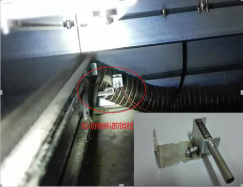 2. 怀疑抽屉本身关闭不到位,人为推紧抽屉发现有较多余量,检查发现抽屉挂钩作用的锁止销松动。