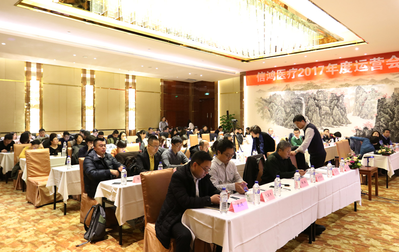 信鸿医疗2017年年度运营会于2018年2月1日至2日在天津津利华大酒店举行,信鸿医疗董事长陈小雷先生、总裁朱雪梅女士和副总裁崔岩先生等企业领导及各部门和子公司的主要负责人出席了会议。此次会议由人力资源总监高同先生主持。本次会议旨在对公司一年来的各项工作进行系统的、准确的总结,与会人员共同分享优秀的经验和成果,同时也为2018年度工作设定全新目标、做出全面规划。
