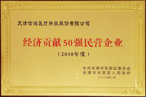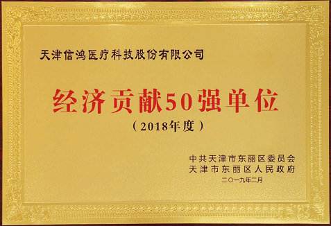 2019年2月20日下午,东丽区委、区政府召开2019年工作会议,对东丽区“2018年度十大优秀民营企业家”、“经济贡献50强单位”和“经济贡献50强民营企业”进行了表彰,信鸿医疗荣获“经济贡献50强单位”和“经济贡献50强民营企业”两项殊荣。