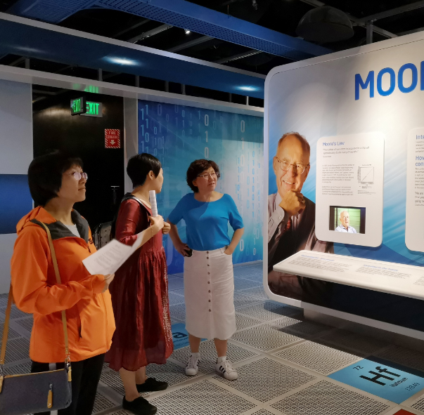 在位于硅谷中心地带的因特尔博物馆,考察团队通过了解因特尔公司的创新发展历史,共同探索着因特尔芯片制造背后的科学,并身临其境地体验了创新技术带来的乐趣和便利。谷歌总部园区更像是一座大学城,一进园便可以看到每一代安卓标志的机器人雕塑,带有谷歌标志色的建筑和造型新颖简洁的休闲区也随处可见,而那些骑着单车、踩着滑板穿梭于园区间的员工,也让考察团队从一个侧面了解到谷歌作为世界互联网巨头的企业创新文化和工作理念。徜徉于斯坦福大学充满西班牙风情的校园内,走过笔直的棕榈道和古典的长廊,穿过茵茵绿草,站在斯坦福纪念教堂门前的空地上遥望远处的胡佛纪念塔,使考察团队能够近距离地感受到广袤的校园内蕴藏着的自由之风。
