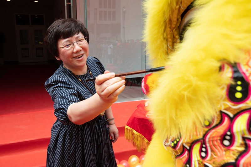 随后,朱雪梅总裁、于莉丽副主任、信鸿医疗营销中心商务总监沈燕、执信孵化器顾问李秀全、总监杨牧以及谱天集团创始人李捷手执金剪,共同为庆典仪式剪彩,朱总和沈总为舞狮点睛,祝贺信鸿医疗乔迁大吉。