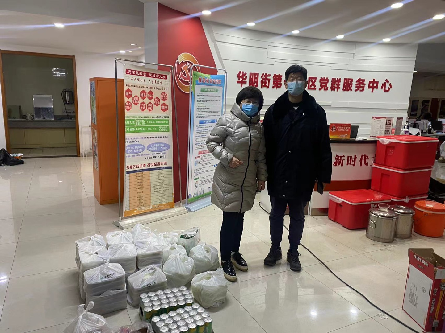 在坚守防线、完成公司责任的同时,公司也没有忽视一线抗疫的生活需求。在通过信息平台得知华明街道第七社区物资短缺后,公司总裁朱雪梅女士第一时间准备了社区急需的各类物资,送到抗疫一线,保障了志愿者的生活需求。