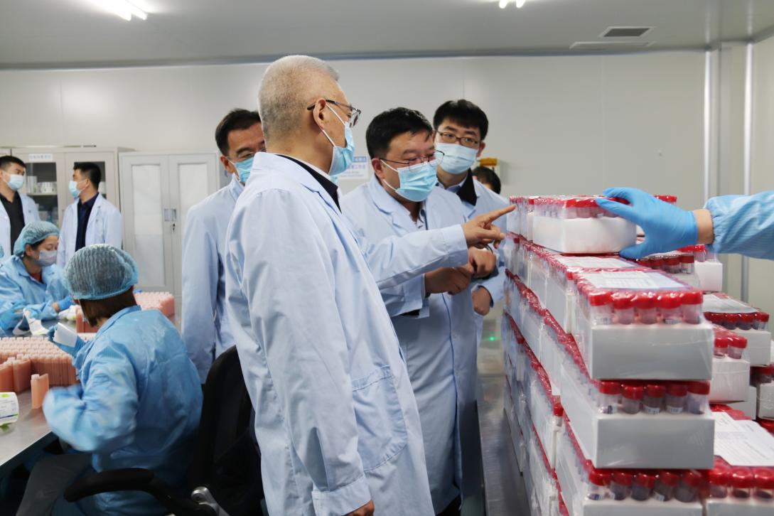 贾堤区长一行参观了中成佳益GMP生产车间,企业负责人赵德明详细介绍了企业基本情况、主要产品以及新冠病毒样本保存液助力核酸检测等情况。