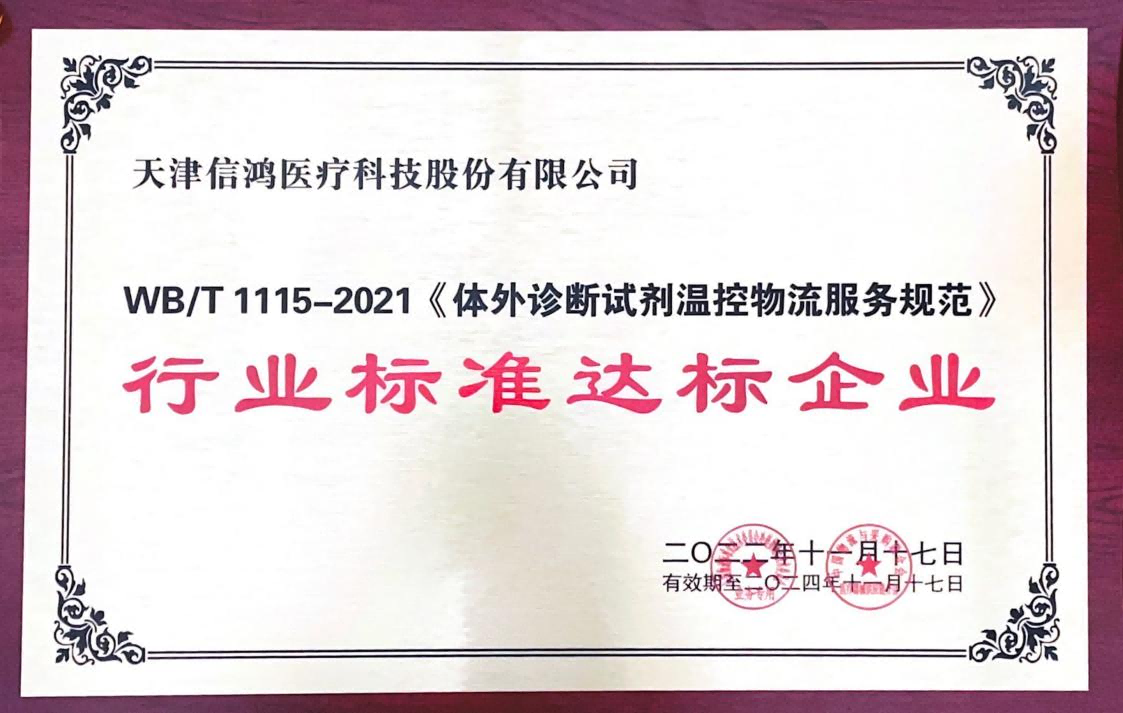 信鸿医疗入选中国医疗器械供应链五十家重点企业及《体外诊断试剂温控物流服务规范》行业标准首批达标企业